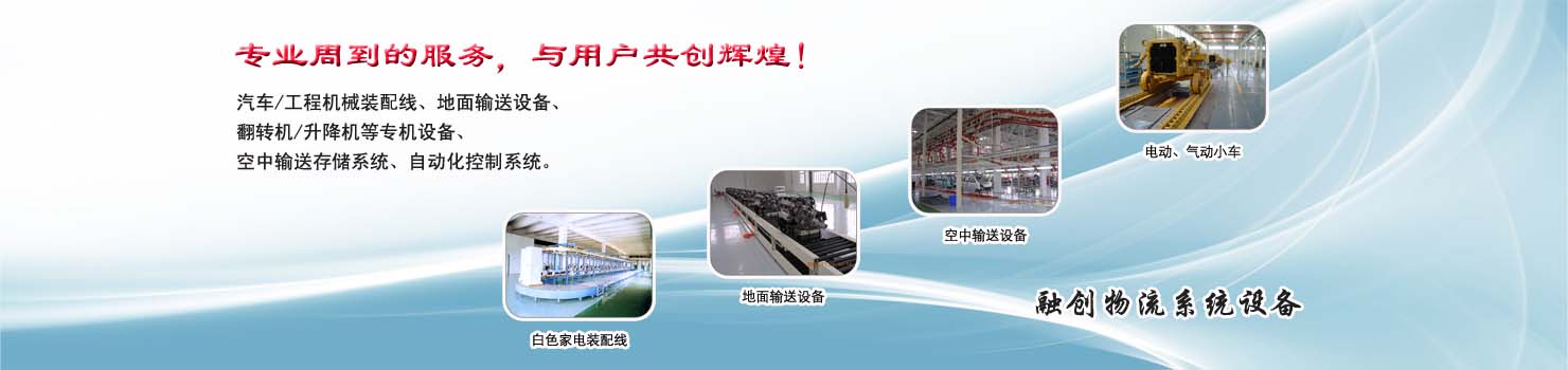 無錫市融創(chuàng)物流系統(tǒng)設(shè)備有限公司專業(yè)從事物流輸送設(shè)備、各類裝配流水線設(shè)備、各類生產(chǎn)非標(biāo)專機(jī)設(shè)備和自動(dòng)化控制系統(tǒng)的專業(yè)生產(chǎn)企業(yè)。廣泛應(yīng)用于轎車、卡車、客車、各類工程機(jī)械、發(fā)動(dòng)機(jī)、車橋、農(nóng)業(yè)機(jī)械、郵政、家電等行業(yè) ...... >> more >>